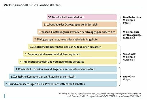 Grundsätzlich gilt, dass von einzelnen Fortschritten auf einzelnen Wirkungsstufen kein Wirkungsnachweis für die gesamte Präventionskette abgeleitet werden kann.