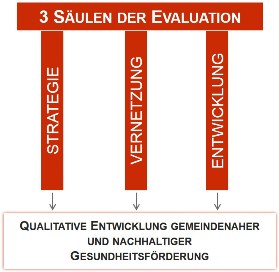 Die unterschiedlichen Stränge wurden zu Beginn der Pilotphase definiert und zu den drei Säulen der Evaluation zusammengeführt (siehe Abb. 2). Sie strukturieren den Projektverlauf und legen die Inhalte der Gesamtevaluation fest.