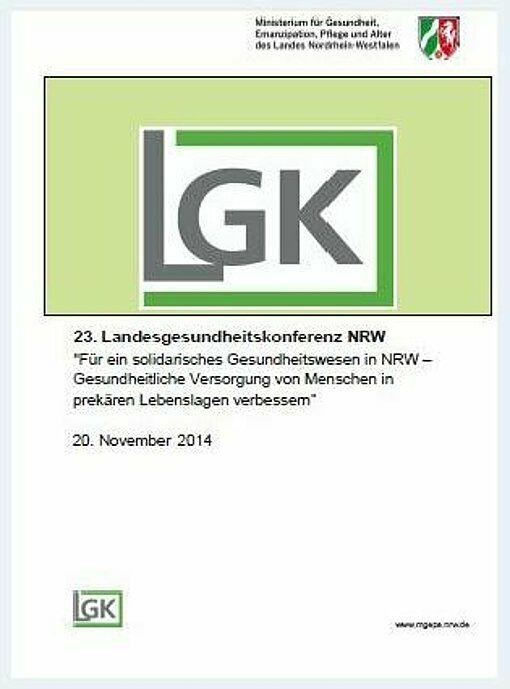 Am 20. November 2014 hat die Landesgesundheitskonferenz (LGK) des Landes Nordrhein-Westfalen einen umfangreichen Maßnahmenkatalog zur Verbesserung der gesundheitlichen Versorgung von Menschen in prekären Lebenslagen verabschiedet.