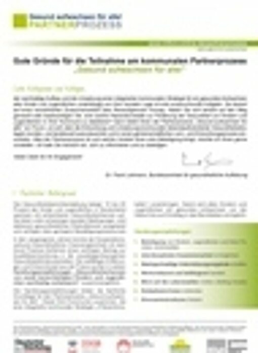 Gute Gründe für die Teilnahme am kommunalen Partnerprozess "Gesund aufwachsen für alle!"