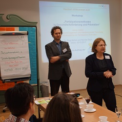 Mit dem Workshop „Partizipationsmethoden in Gesundheitsförderung und Prävention“ am 19.10.2017 im Augustinerkloster Erfurt unterstützte die AGETHUR Thüringer Fachkräfte aus unterschiedlichen Bereichen dabei, sich dem Thema und der Umsetzung der Beteiligungsmethoden anzunähern. Die Veranstaltung wurde vom Team des nexus-Instituts für Kooperationsmanagement und interdisziplinäre Forschung aus Berlin durchgeführt. Neben Grundlagenkenntnissen zu bspw. den Ansprüchen und Stufen der Partizipation, wurden ausgewählte Methoden und Beispiele guter Praxis vermittelt. Damit sich die Fachkräfte gut ausgerüstet auf den Weg zur gelebten Partizipation aufmachen können, wurden einzelne Methoden, wie z.B. Fokusgruppe oder Bürgerausstellung, eigenständig von Kleingruppen im Workshop erarbeitet und exemplarisch anhand einer Idee geplant.
