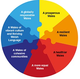 Gefolgt von einem sehr inspirierenden Beitrag von Dr. Sumina Azam (Head of Policy at WHO Collaborating Center for Investing in Health and Well-being, Public Health Wales) zum gesellschaftlichen Nutzen von Investitionen in Public Health, als Motor für eine nachhaltige Entwicklung, im Rahmen des Well-being of Future Generations (Wales) Act 2015. Mit diesem neuen Gesetz müssen öffentliche Institutionen in Wales bei allen Entscheidungen, die sie treffen, bewusst darüber nachdenken, inwiefern diese Entscheidungen einen Einfluss auf die Lebensqualität der Menschen in Wales haben werden. Dazu gibt es sieben Ziele für mehr Wohlbefinden, auf die alle öffentlichen Institutionen hinarbeiten müssen (siehe Abbildung). Nachhaltigkeit muss von vornherein mitgedacht werden, ebenso wie die Art und Weise, wie zusammengearbeitet wird und wie die Menschen in die Entscheidungen mit eingebunden werden können. Mehr zu diesem Gesetz gibt es hier zum Nachlesen.